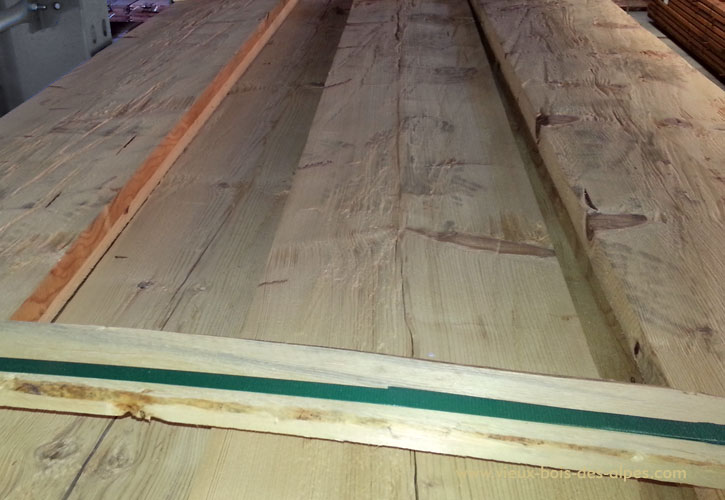 Ces vieux-bois sont conditionnés en planches avant d’être étuvés, puis éclatés pour offrir un produit "rustique" à mettre en œuvre rapidement.