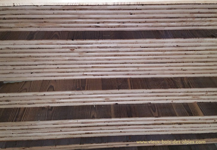 Réalisation meuble de cuisine en 3 plis vieux bois