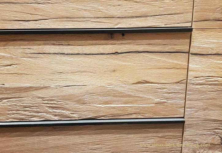 Les vieux bois éclatés et étuvés sont caractérisés par leurs aspects, nœuds, fissures et trous de clous.